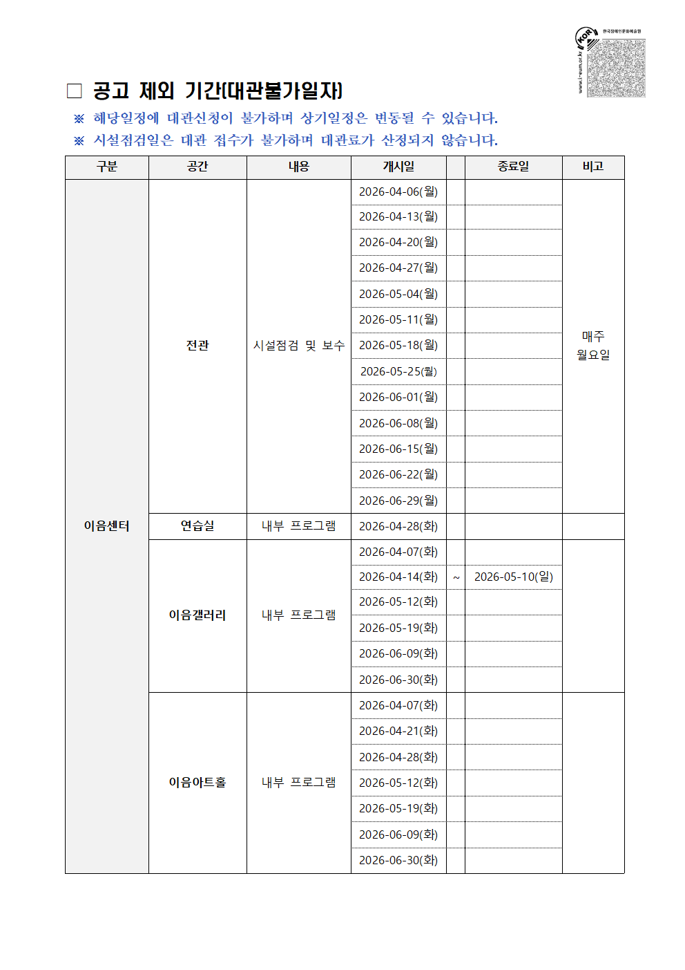 1. (공고문) 2026년 장애인문화예술센터 '이음' 2분기 정기대관 공고.pdf