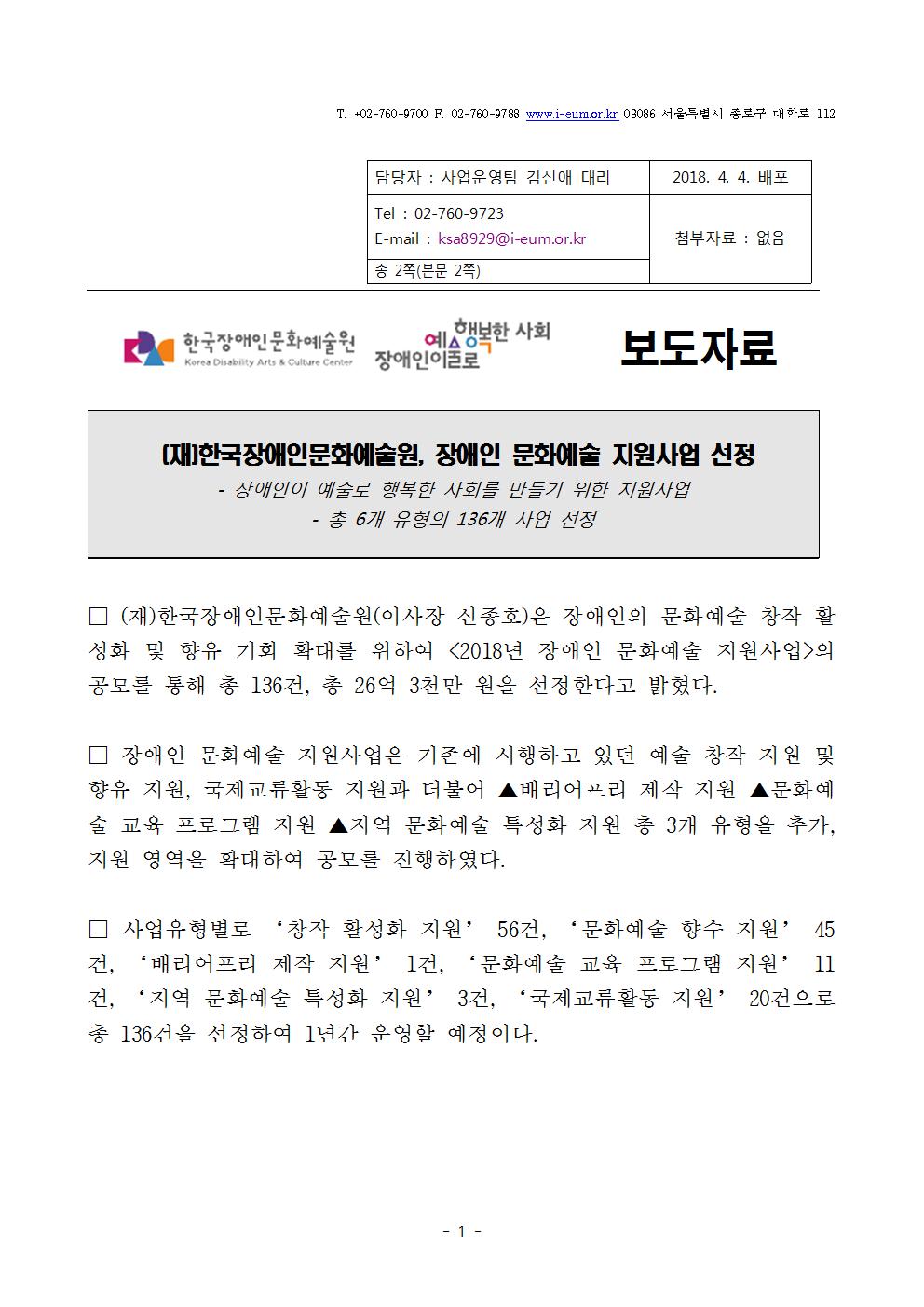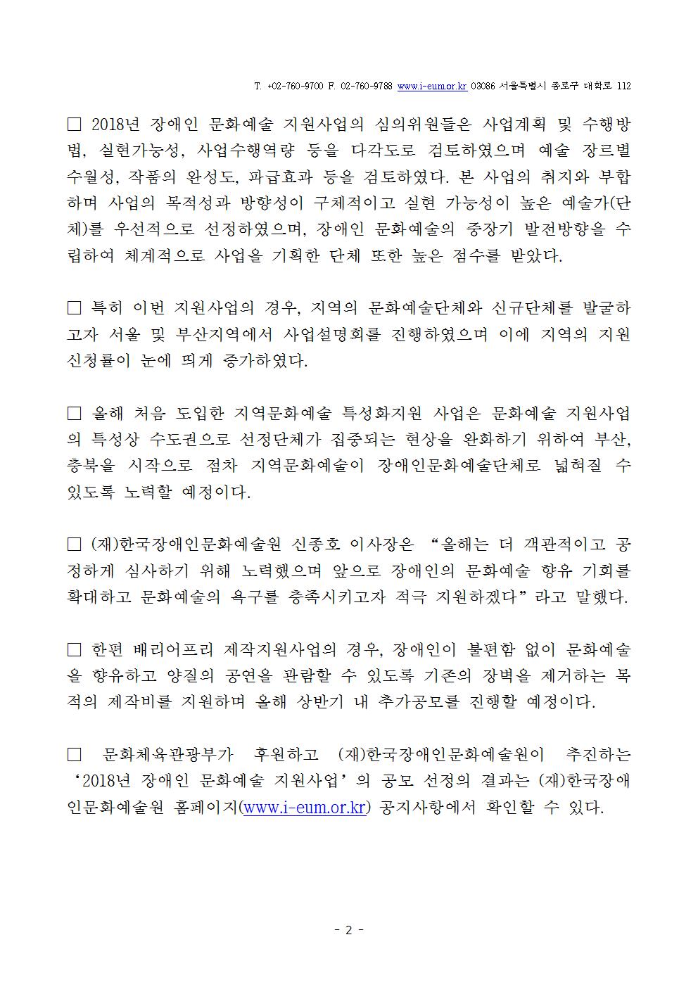 [보도의뢰서] 2018년 장애인 문화예술 지원사업 공모 결과발표.hwp