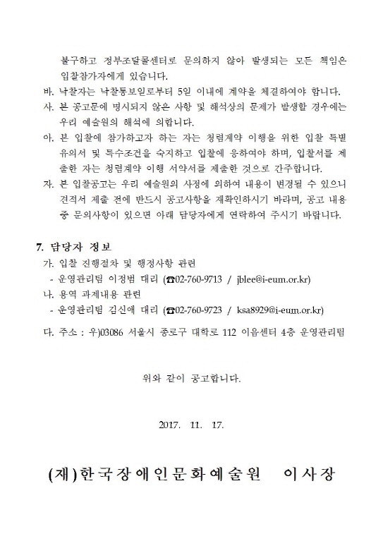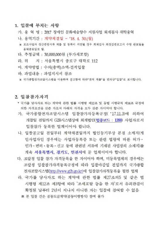 [공고번호 2017-3] 2017 장애인 문화예술 향수지원 회계검사 위탁용역 입찰공고