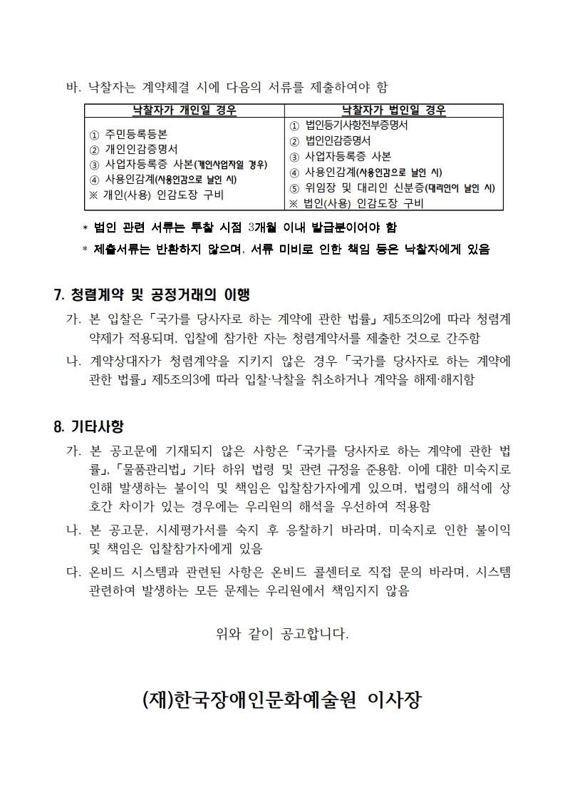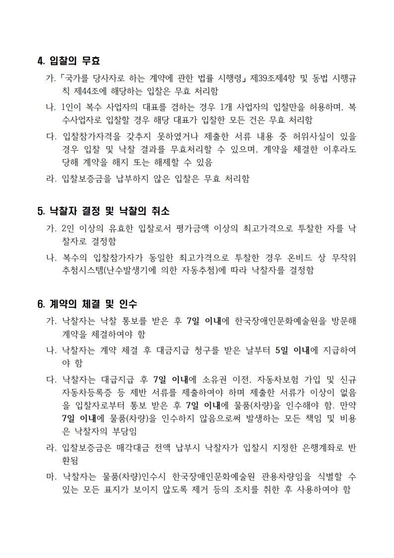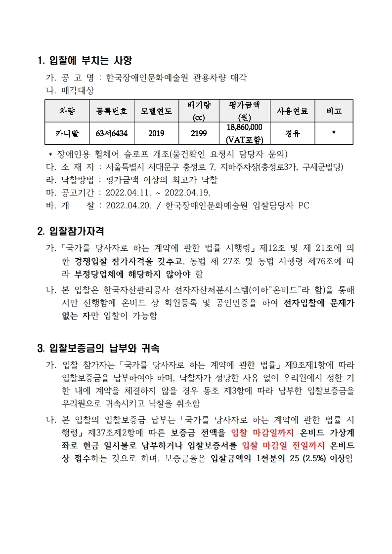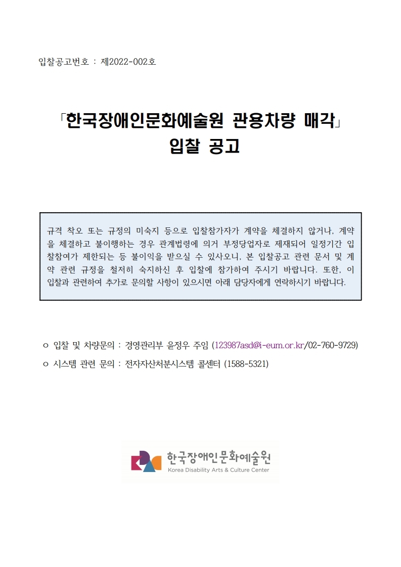 [제2022-002호] 2022년 한국장애인문화예술원 관용차량 매각 입찰 공고