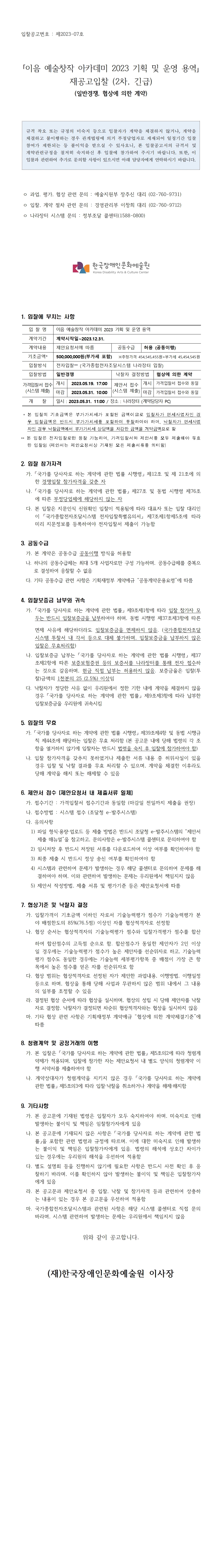 붙임1. 입찰공고문_이음 예술창작 아카데미 2023 기획 및 운영 용역 (2차, 재공고).hwp
