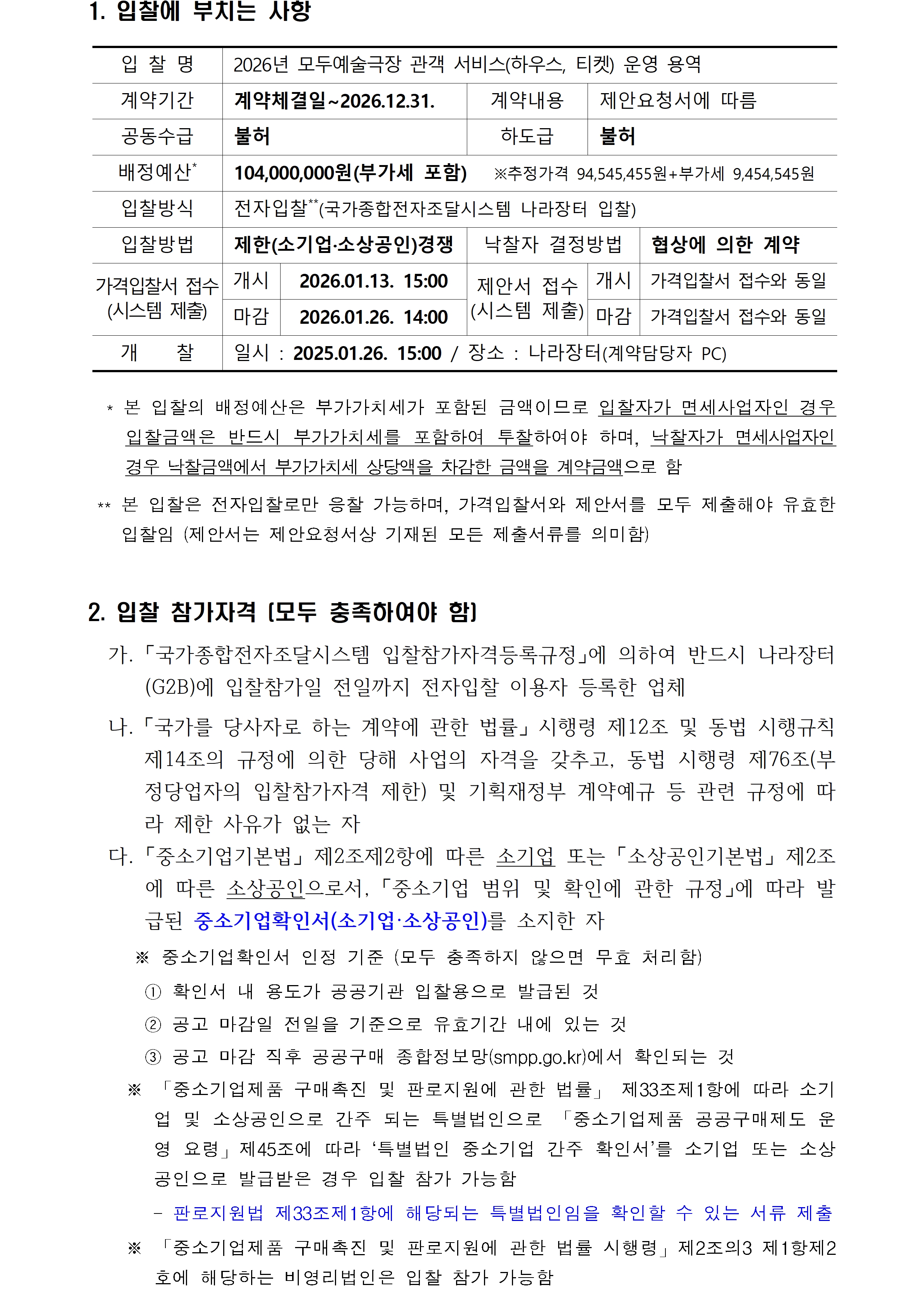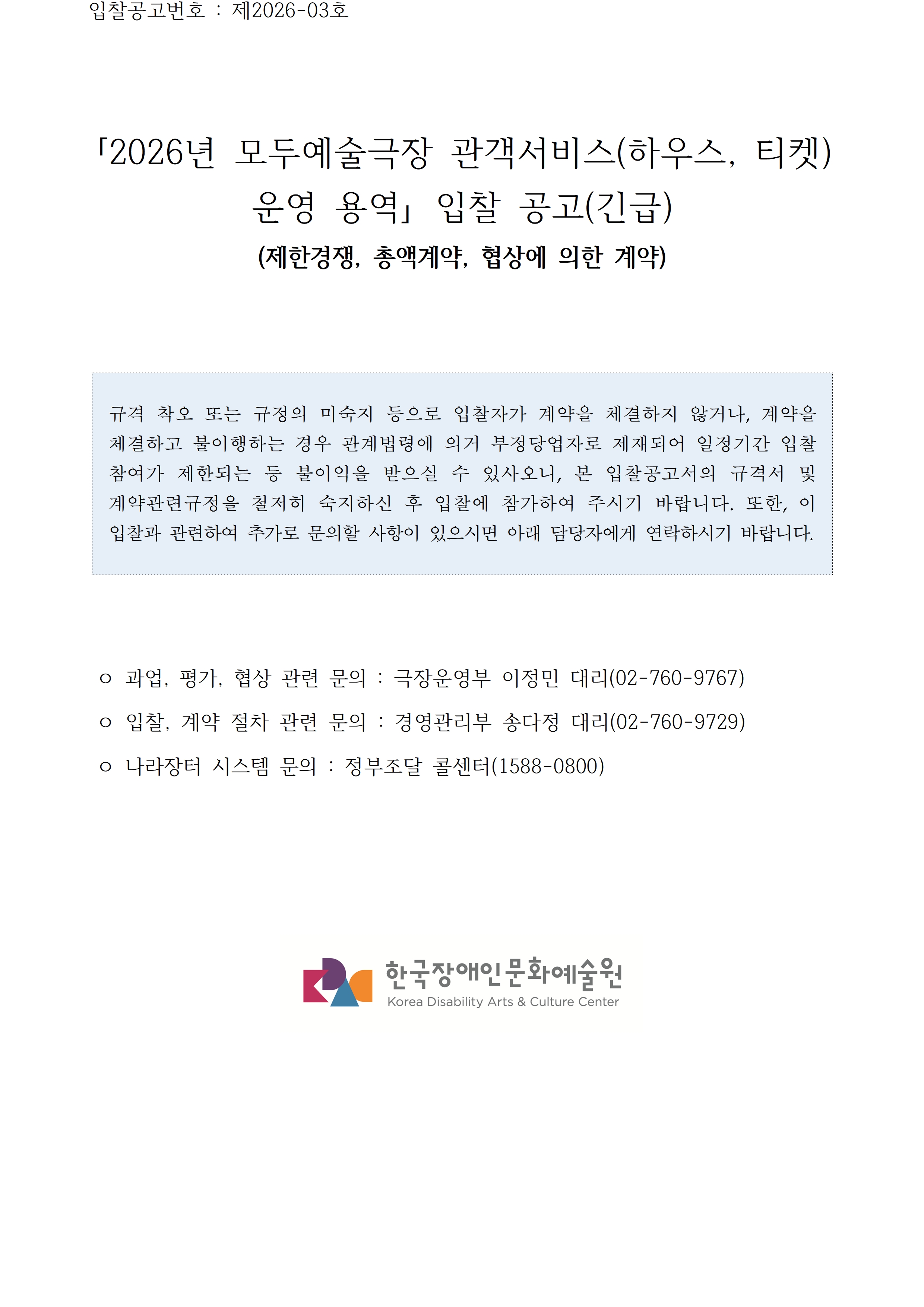 2026년 모두예술극장 관객서비스(하우스, 티켓) 운영 용역