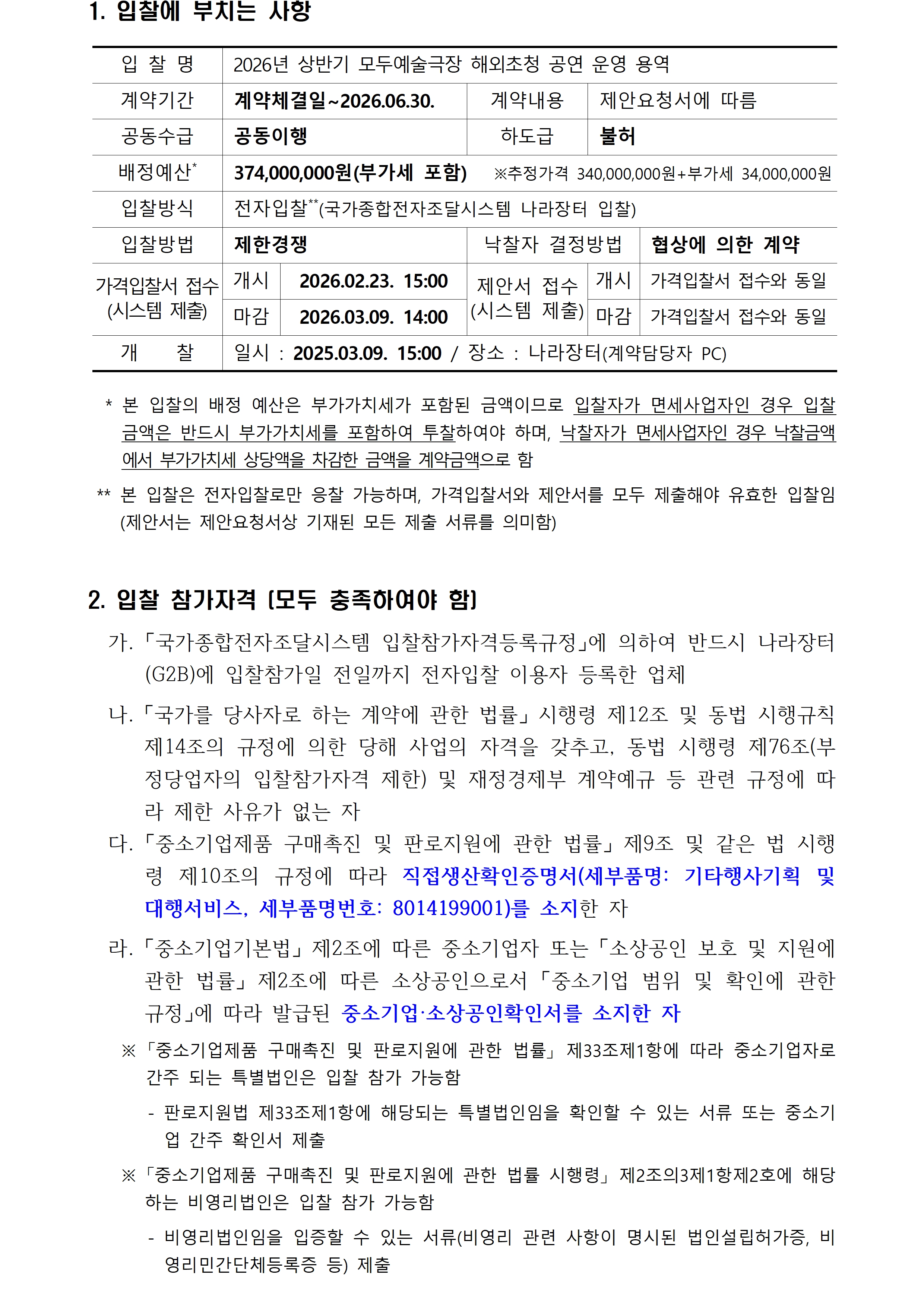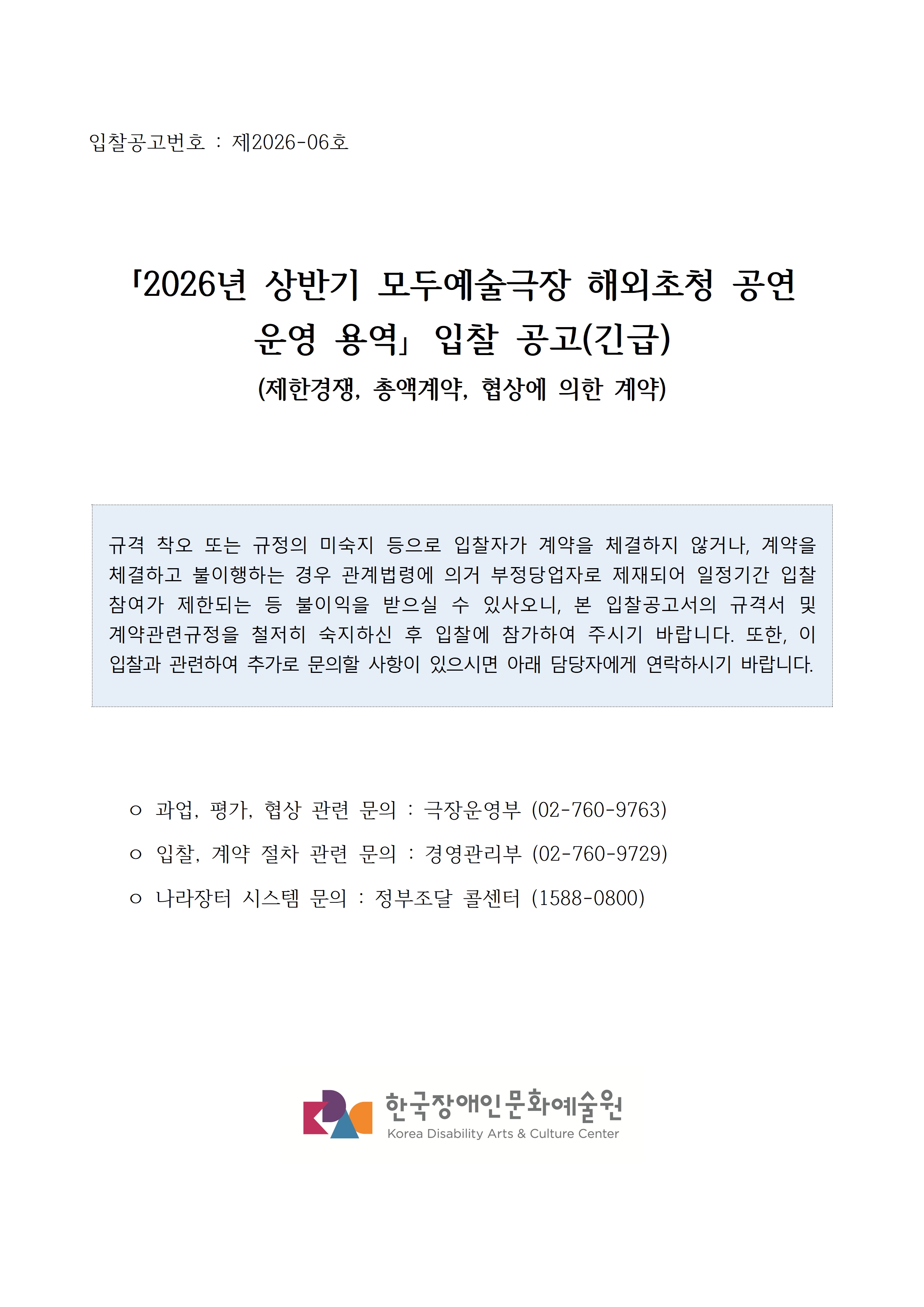 2026년 상반기 모두예술극장 해외초청 공연 운영 용역