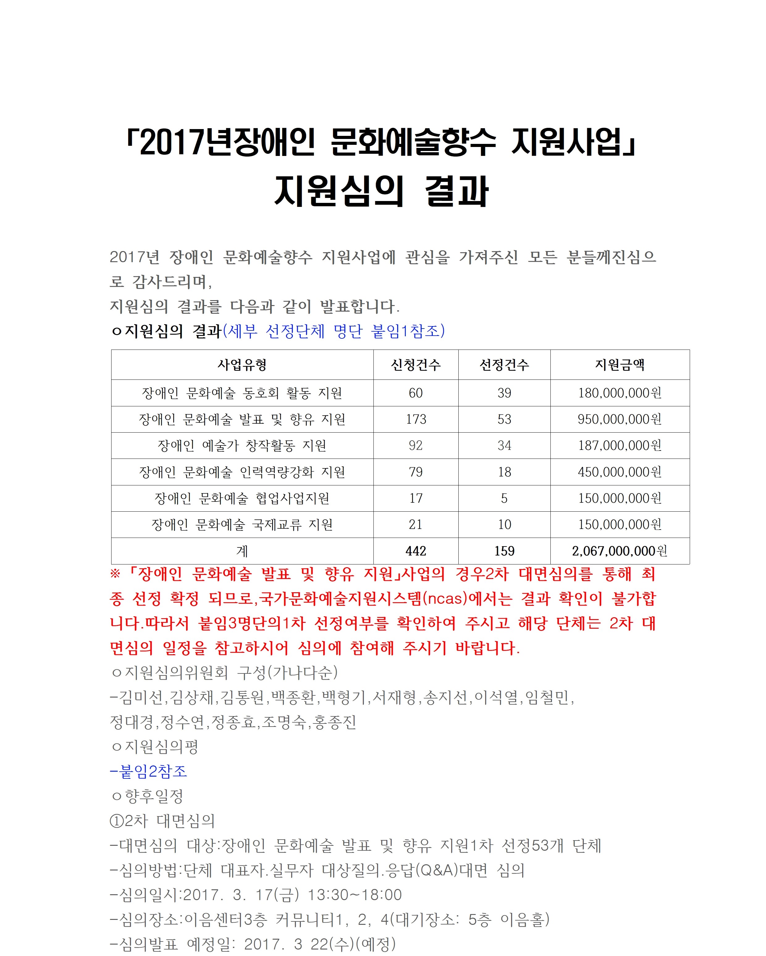 [사업결과] 2017년 장애인 문화예술향수 지원사업 지원심의 결과 발표