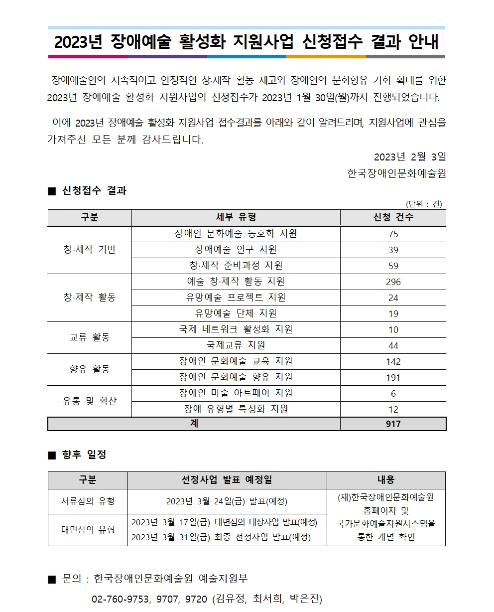 [2023년 장애예술 활성화 지원사업 신청접수 결과 안내]