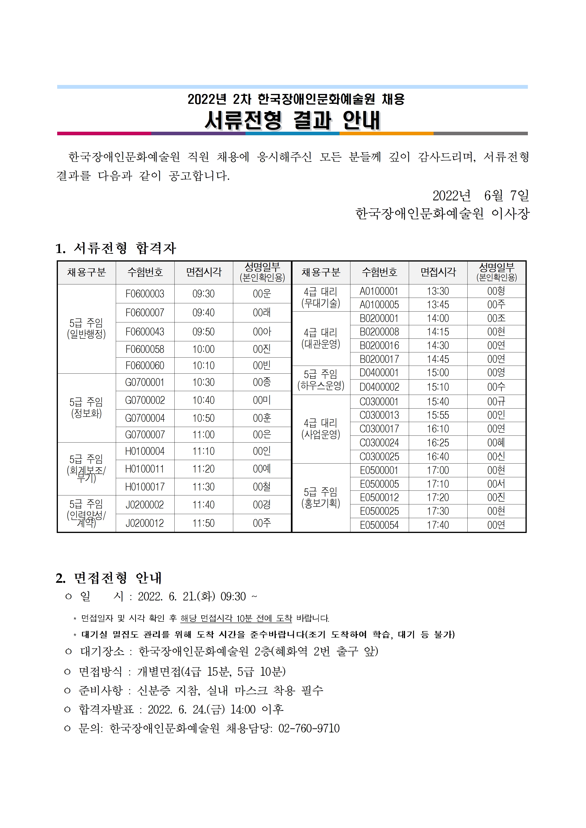2022년 2차 한국장애인문화예술원 채용 서류전형 결과