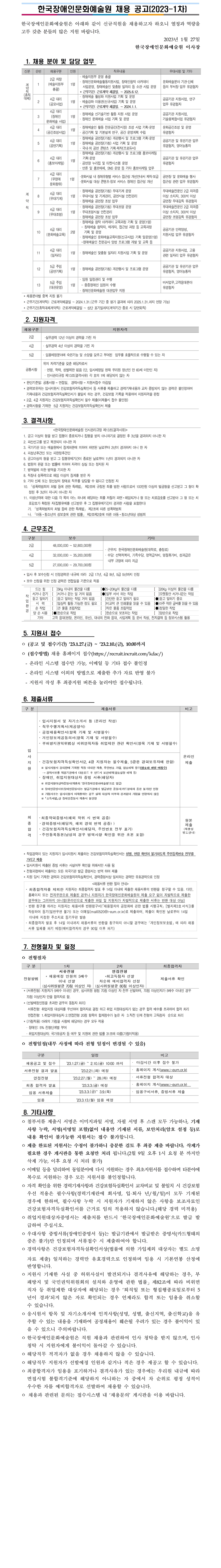 한국장애인문화예술원 2023-1차 직원 채용 (계약직, 휴직대체)