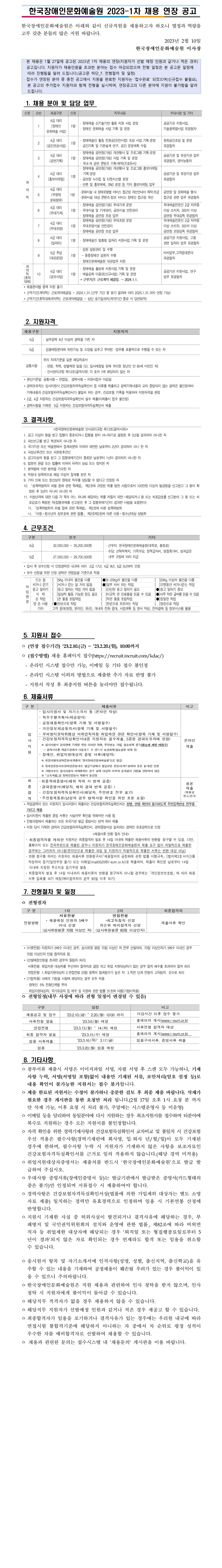한국장애인문화예술원 2023-1차 직원 채용 접수기간 연장(계약직, 휴직대체)