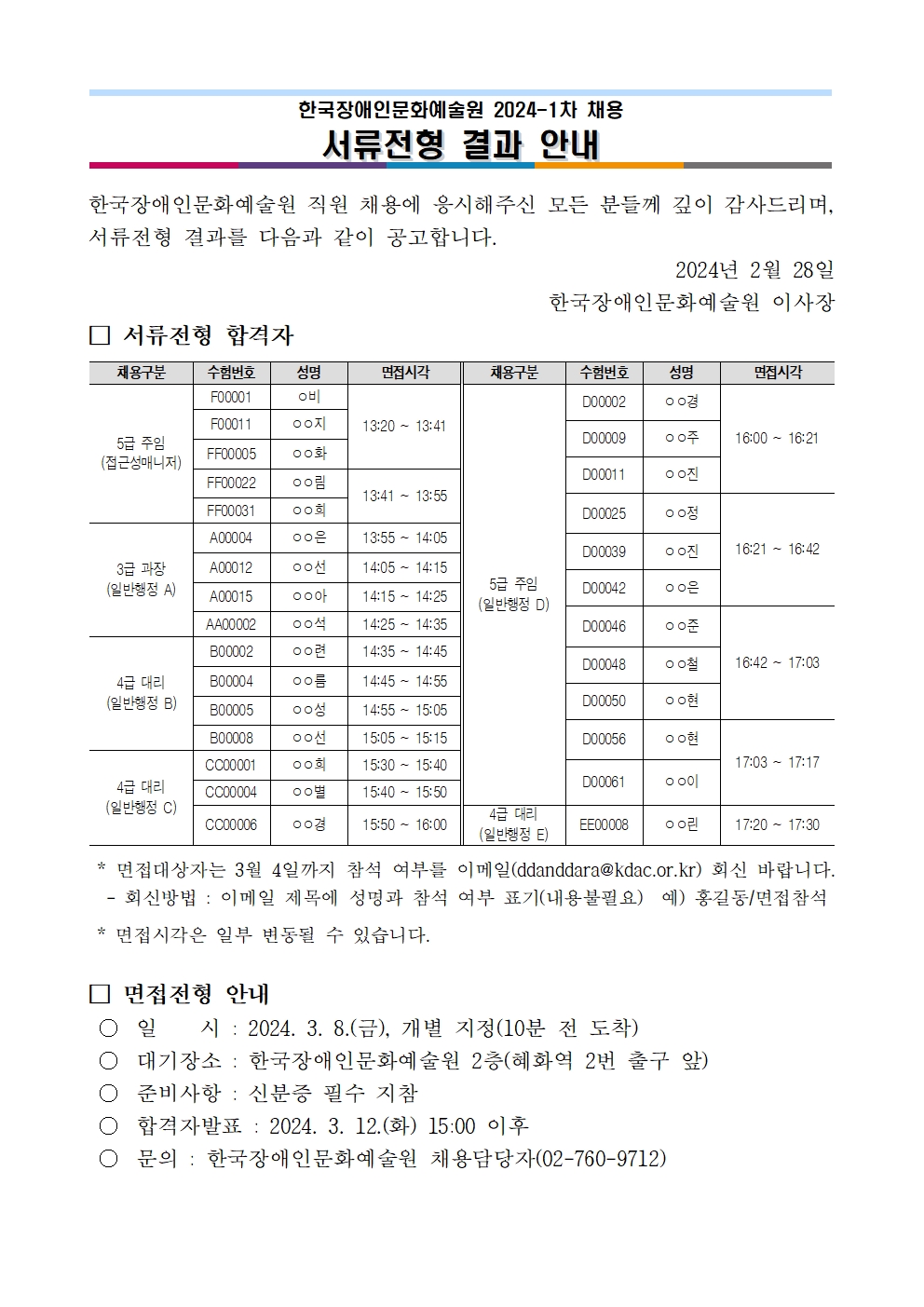 한국장애인문화예술원 2024-1차 채용 서류전형 결과