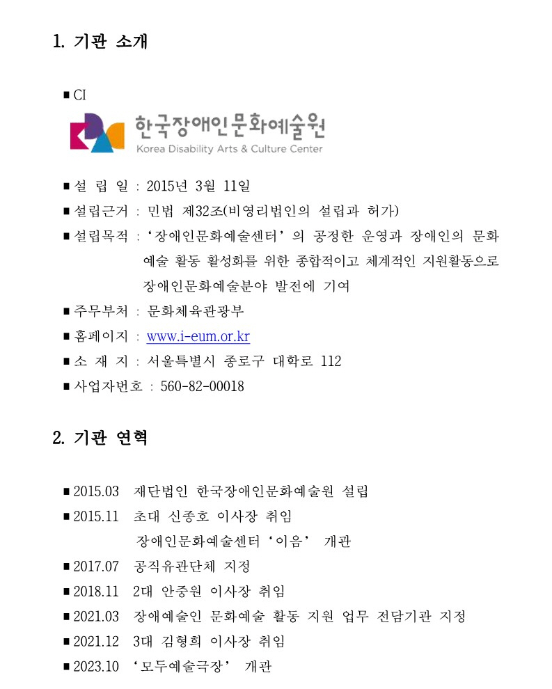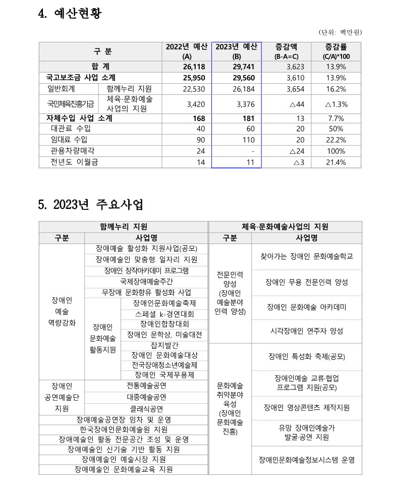 2023년 한국장애인문화예술원 경영공시